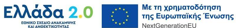 Η Πράξη υλοποιείται στο πλαίσιο του Εθνικού Σχεδίου Ανάκαμψης και Ανθεκτικότητας «Ελλάδα 2.0» με τη χρηματοδότηση της Ευρωπαϊκής Ένωσης – NextGeneration EU.